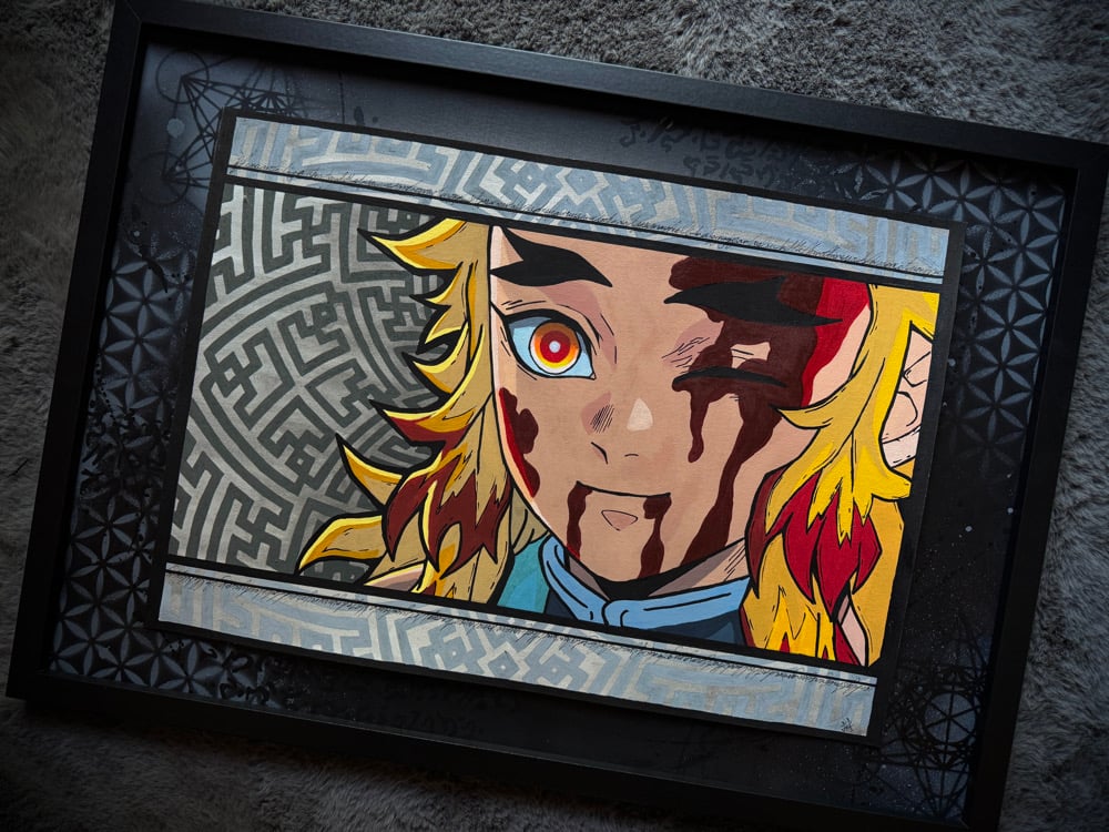 Original painting of Rengoku from Demon Slayer, a scene from one of the most emotional moments.